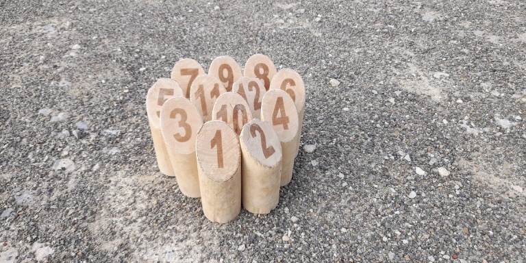 Mölkky ist ein finnisches Holzwurf-Spiel. Ziel ist es genau die 50 Punkte zu erreichen. Es zählt bei einem umgefallenen Kegel die Punktzahl des Kegels, bei mehreren umgefallenen Kegeln die Anzahl der Kegel. Je länger das Spiel geht, desto taktischer wird es. Überwirft ein Team die 50 Punkte, fällt es zurück auf 25 Punkte. Leistet sich ein Team 3 Fehlwürfe hintereinander zählt das Spiel als verloren mit 0 Punkten. Der Gegner bekommt in diesem Fall den derzeitigen Punktestand gutgeschrieben. (Kurzfassung)